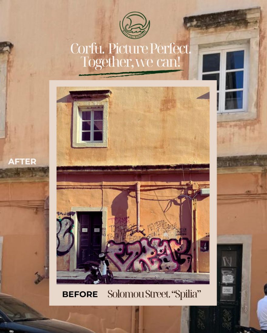 Φέτος το καλοκαίρι, οι «Φίλοι της Κέρκυρας» ανέλαβαν μια νέα, στοχευμένη δράση καθαρισμού κτιρίων στο ιστορικό κέντρο της πόλης. Στόχος ήταν η αφαίρεση παράνομων γκράφιτι και μουτζουρών, με την πεποίθηση ότι η βελτίωση της πόλης μας απαιτεί την ενεργό συμμετοχή όλων μας.